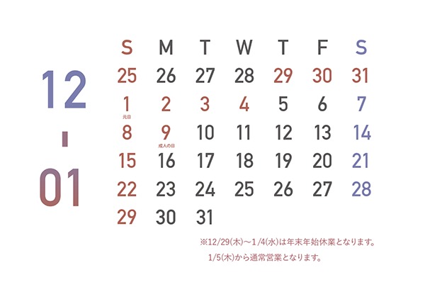 それ以降のご注文に関しましては、1/5(木)より順次発送を開始いたします。