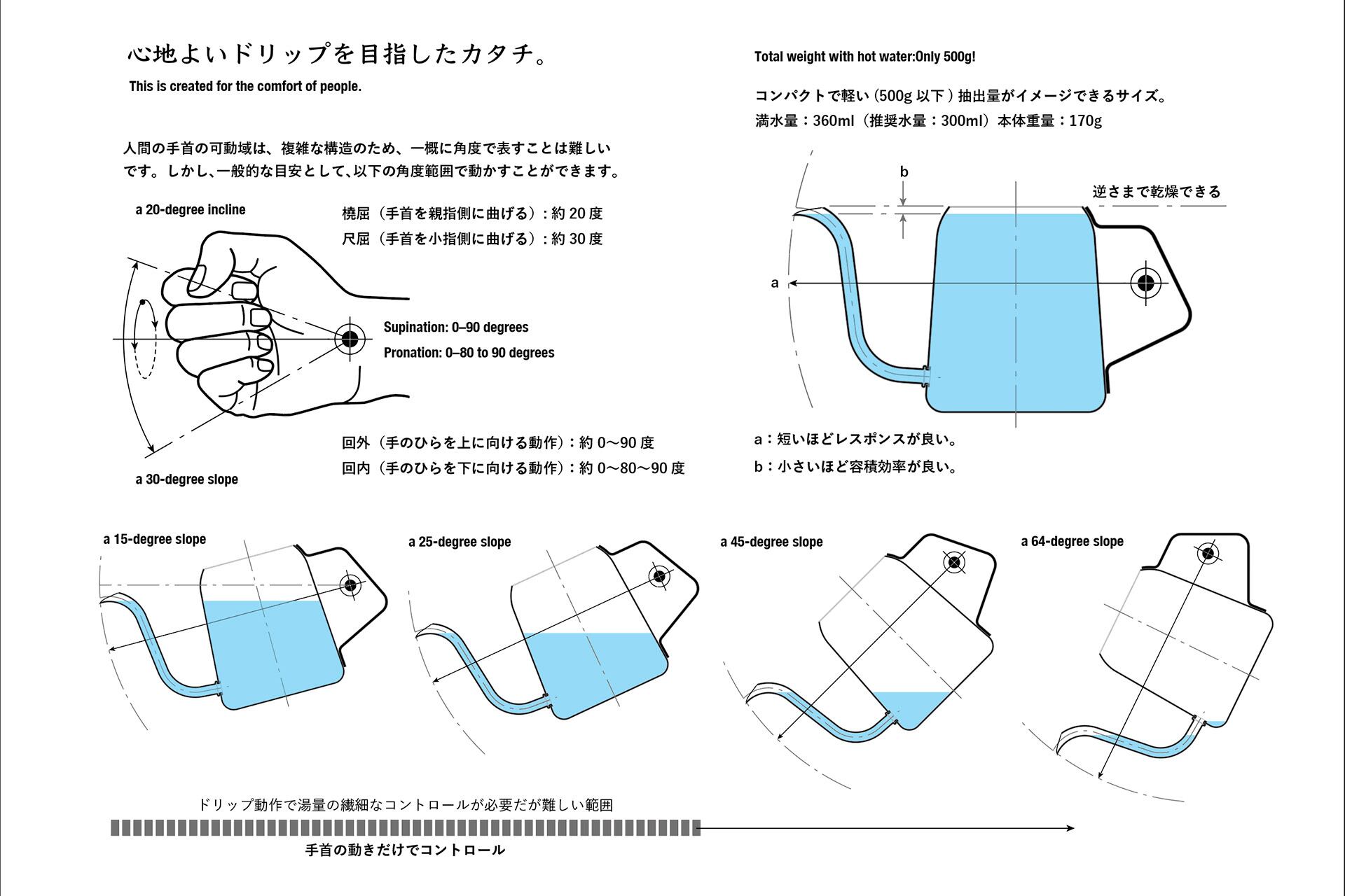 コンパクトなフォルムと合わせ、手首の可動域でコントロールでき、ドリップの際のハンドリングの良さを目指したドリップポットです。抽出量をイメージしやすいコンパクトなサイズです。